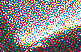 The image may be printed out either on the paper or on the other surface. The color model CMY. The hidden images are coded in the layers CYAN and MAGENTA. The enlarged fragment of the raster: