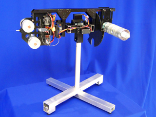 A demo stand for rotating and stabilizing a 11 kg video camera.