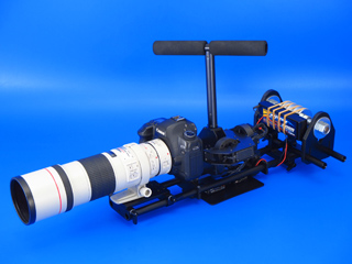 A demo stand for rotating and stabilizing a 6 kg video camera.