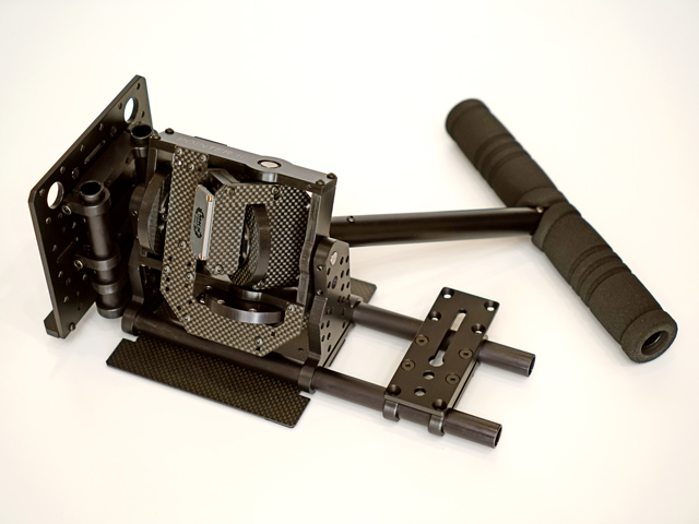 Prototype #1 Prototype #2 Prototype #3 Smaller, lighter and more accurate internal camera gimbal. The design of this stabilizer is drastically different from all current popular models. It doesn't have a large frame around the camera limiting the length of the camera and lens, doesn't use large bicycle type handlebars and has no requirement for a special stand. However, the main difference is in the new type of servo drives that it uses.