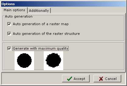 The option "Generate with Maximum Quality" includes additional algorithms, allowing the generation of a raster with more smooth edges, thus the speed of work of the program is reduced approximately by 30 %.