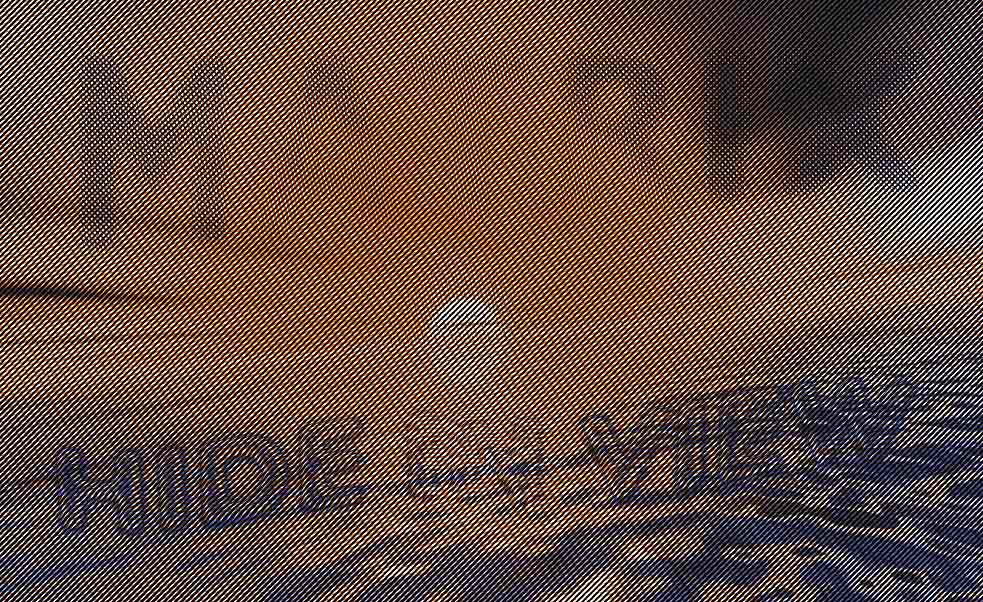 В отличие от классических гильош-элементов технология Hide In View предоставляет гораздо больше возможностей определения подлинности. Даже при копировании обычных цветных изображений не всегда удается сохранить в точности все оттенки, поэтому в первую очередь стоит обратить внимание на цветовое соответствие изображений. Если при сканировании и последующей печати векторных узоров толщина линий изменилась на несколько микрон, то это не будет так заметно, как значительно исказившиеся оттенки изображения, при использовании технологии Hide In View. Вторым важным фактором является четкость изображения. При обычном копировании (сканирование, снятие муара, повторное растрирование и печать) качество изображения значительно ухудшается, мелкие детали исчезают, картинка становиться мутнее. Далее следует убедиться, что способ печати соответствует оригиналу. Признаками фальсификата будут: изображение отпечатано стохастическим растром (чаще всего струйные принтеры) или упорядоченной структуры просто не видно (некоторые виды цифровой печати), краска блестит и чувствуется на ощупь (некоторые виды цифровой печати), точки растра значительно крупнее и расположены реже (могут быть различные виды печати), можно различить геометрическую структуру оригинального растра, но при ближайшем рассмотрении линии будут нечеткими и с размытыми краями (при сканировании муар не снимался, при печати использован мелкий стохастический растр или цифровая печать). Для получения более качественной копии может использоваться другой сорт бумаги. Как правило, лицевая и оборотная стороны листа специальной бумаги для принтеров отличаются. Ниже приведены примеры качественных копий, выполненных на лазерном принтере с резолюцией печати 1200 dpi и струйном принтере с резолюцией печати 1440 dpi, средняя линиатура оригинального растра - 133 lpi.