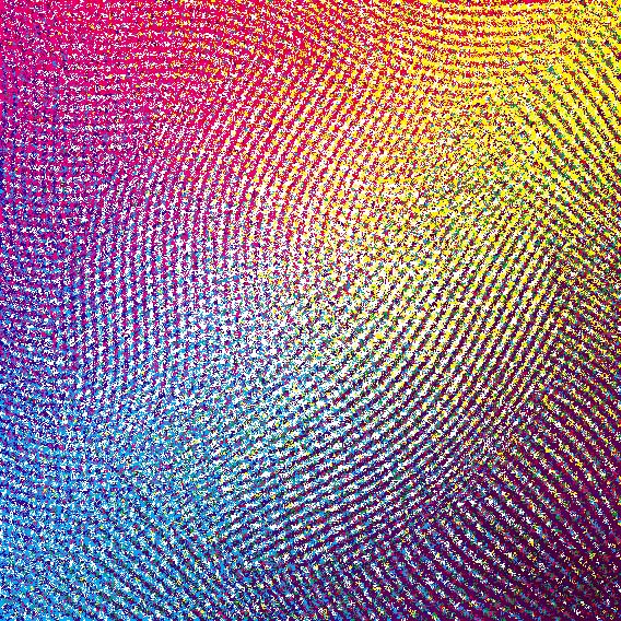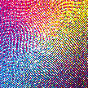 Чтобы убедиться в наличии геометрических искажений структуры растра, нужно наложить на проверяемое изображение простую регулярную сетку из густо расположенных тонких параллельных линий. Наложив такую сетку на любое иное изображение, вы либо не увидите ничего, либо монотонный муар по всей поверхности, и только на оригинальном изображении в радужных контурных линиях скрытое изображение станет заметным. Если проверочную сетку медленно двигать по поверхности оригинального изображения, то скрытое изображение будет проявляться разными оттенками. Если вы не уверены, что узор соответствует оригиналу, то совместите с изображением проверочную сетку с сохраненными искажениями. Теперь появившиеся контурные более светлые и более темные линии выделяют все несоответствия с оригинальной структурой. Но начинать поверку стоит с проверочной сетки не имеющей искажений.