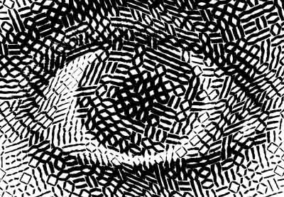 Сама по себе искаженная структура растра является серьезной защитой, поскольку никакие другие программы и аппараты не используют подобных эффектов. Даже распологая файлами оригинальных изображений, имея программу МАТРИКС® и зная параметры деформации, порой невозможно повторить оригинальный растр. Ниже приведен пример изображения, растрированного в программе МАТРИКС® с использованием декоративных видов растра, видоизменение которых связано со встроенным генератором случайного значения. При каждой последующей генерации изображения в структуре растра можно будет увидеть отличия от первого варианта.