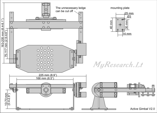 Active Gimbal is the controlled platform for the video-camera, provided with two rotation axles.