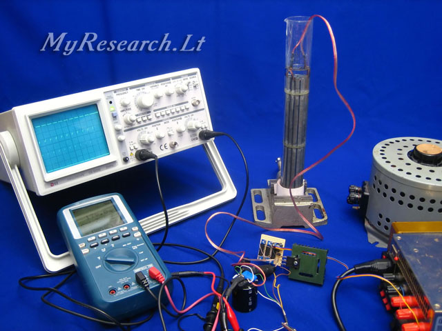 This experimental work is dedicated to Stanley Meyer’s work (the patent US 4798661 and several further ones) and also to Inoue Kiyoshi (the patent US 4184931). There are many descriptions of the similar schemes, created by enthusiasts, who wish to use the water as the fuel. The notion “Brown’s Gas” is also often related with this experiment.