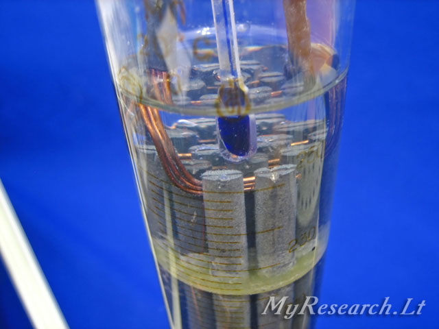 The available volume of the reactor is 200 ml. The electric capacity of the dry reactor is 130pF. The reactor is filled in with the distilled water.