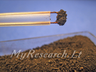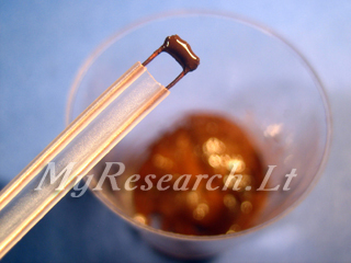 6) Dip the resistor, soldered to the wire, firstly into the sulphur solution and then into the dry powder of the gunpowder.