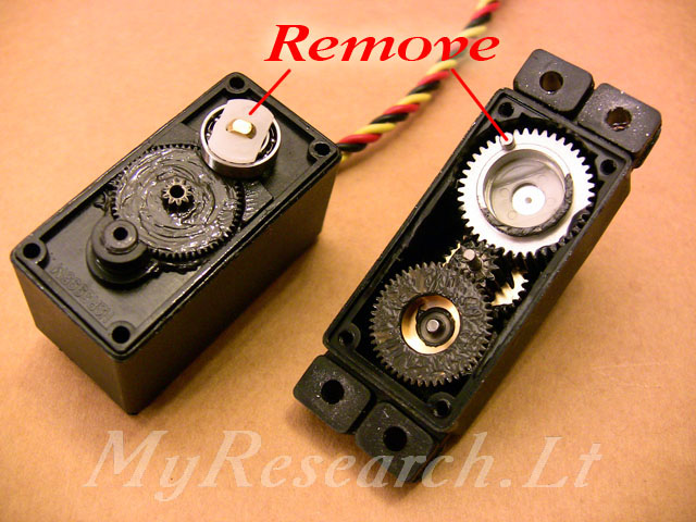 The photo reflects the gear with the restrictive ledge, which must be pulled out, and the insert, connecting the mechanism with the potentiometer, which must be removed.
