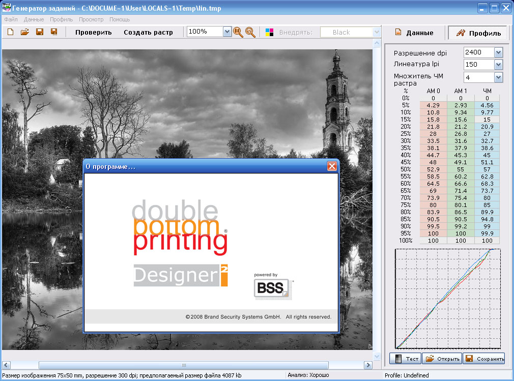 The program product allows coding of the secret digital information in the raster of the printed image. The text or the computer file with any content may be used as the secret content. The common scanner and the computer program-decoder are used for reading the secret information. The secret information gets lost in case of copying the image.