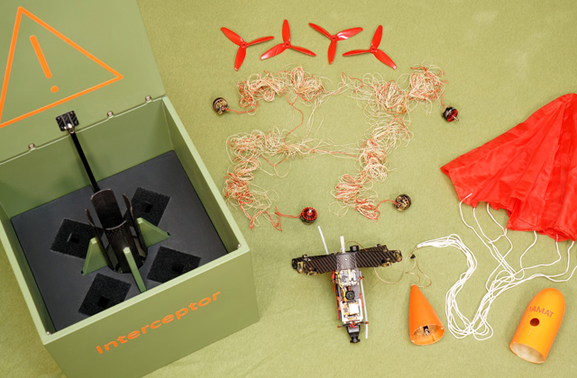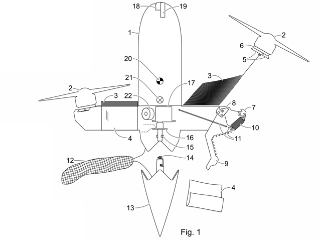 Drone interceptor with a net gun This drone interceptor is designed to catch light UAVs. High power-to-weight ratio is a competitive advantage of this concept. It allows the drone to fly fast. Before an attack, the target can be circumflown for identification. Drone rotors are used to spread the net. High-energy rotors allow the use of a larger net. At the moment of attack, the rotors accelerate and detach from the frame. At the same time, the net fastening straps are released. The Kevlar net blocks the target's rotors and disrupts the glider control. After an attack, the interceptor descends using a parachute and emits a sound signal. The interceptor can be reused. The interceptor does not contain any prohibited components. Racing drone components were used. The interceptor is launched from the container. Several containers with interceptors can be placed on a patrol car. A racing pilot can single-handedly operate the complex. The attack mechanism involves a chain of unique mechanical units. The technical reliability of the prototype is approximately 70%. Realistic development path: a couple of years to improve the airframe (demonstrations under our control); several years to prepare a stand-alone version for wealthy clients (a multimillionaire can show such a toy to guests on his yacht); several years to achieve the reliability of military equipment; a couple of years to reduce production costs for large-scale placement. ![]() ![]() ![]() ![]() ![]() Interceptor drone in the press: sUAS News, TechCrunch, GIZMODO, Drone Watch, Government technology, New Atlas, Avalanche Noticias, Life Hacker, Go4it, cnBeta, es Postsus, el Espanol, 20minutos, MundoConectad, Drone-Zone, Futura Sciences, BUG, Dday, TEKNOMERS, Gerente, NexTech, BirMilyon Haber, DroneXl, Tech Doxx, 3D News, Hightech, YahooNews, Yandex, Bus-Lunch, Quadricottero News, Meet Ivia, Technologijos, Lietuvos Rytas, HackaDay, MeteoWeek, 4pda, Channel969, RoboTrends, BuildingTech, NanoNewsNet, TechCult, Raketa, Napi, LifeNews, Begeton, InternetUa, Bigumigu, FlashNews11, Trend Hunter, HiTech Glitz, Best University Info, Quick Telecast, AutoEvolution, SHKMGMCNUH, Techno Blender, Tech X, News Vex, NTIQUER, Wdc News 6, GameNews24, Big Boss News, More News Online, WeWeat, Business Traverse, Khizer Tariq, News Net Daily, Tech4SEO, Hitecher, Latest News, Airvers Tech News, Universelol, Inceptive Mind, DroneDj, AvalancheNoticias, CopyFuture, NewsExplorer, GamingDeputy, DroneBlog, The US Sun, Wonderful Engineering, SMART Maker, DroneZine, Gigadgets and others. |