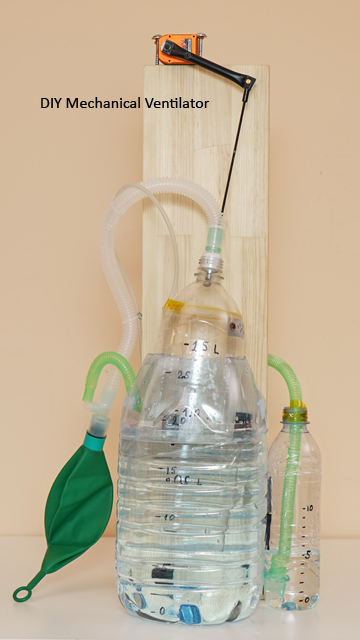 DIY positive pressure ventilator DIY positive pressure ventilator was spontaneously created on early stage of COVID-19 pandemia. RC hobby master can find such components in his garage. A kit of hand tools is needed to assemble at home. No 3D printers or public workshops needed. Silicone tube is attached to Oxygen Regulator. There are one input and one output for a mask, no extra valves. A patient can breve in and breathe out at any moment by applying a lung pressure over the ventilator. Volume < 1.4 L ![]() |